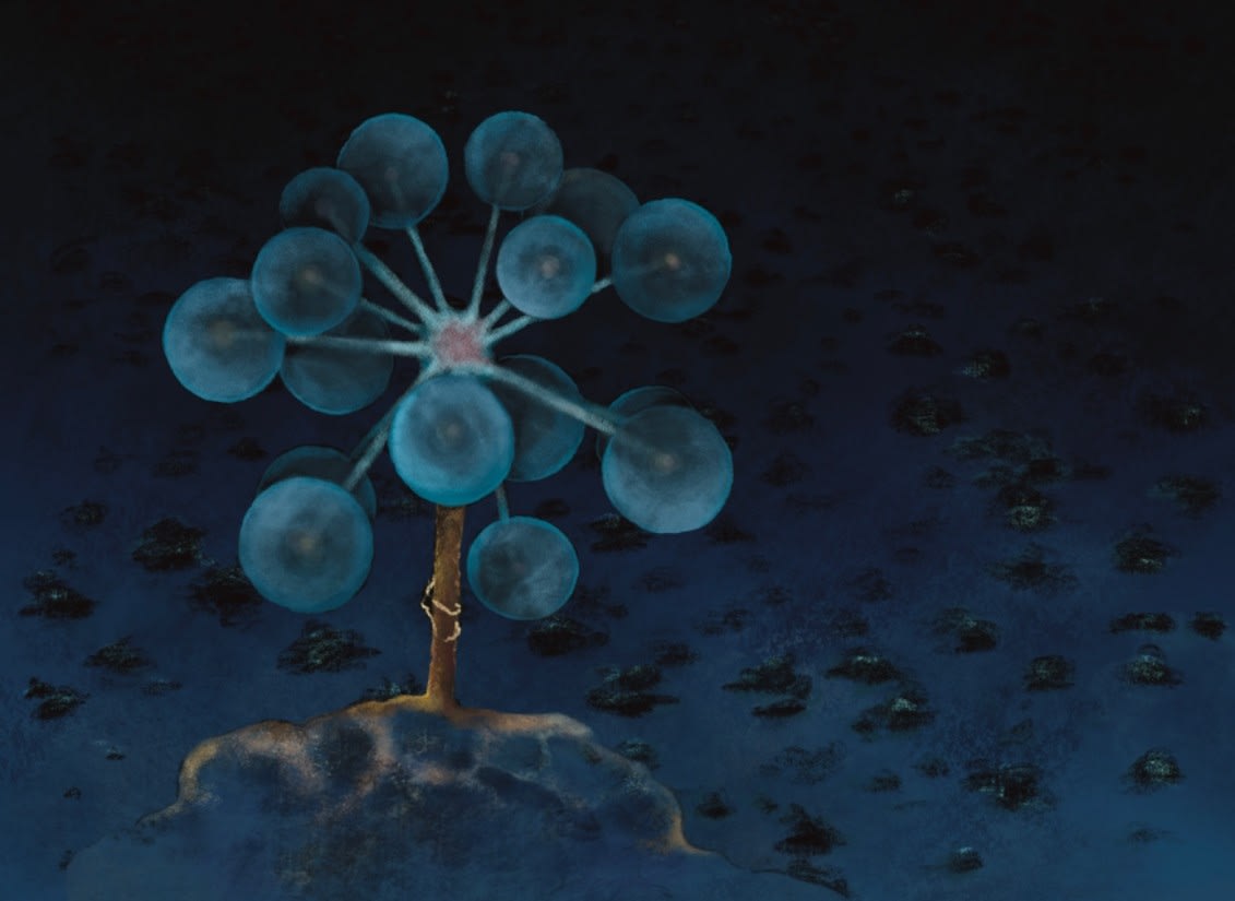 Treffen mit dem Künstler Kim Nekarda, der schon vor Jahren Hydrothermalquellen, also die Tiefsee in seinen Bildern thematsiert hat.